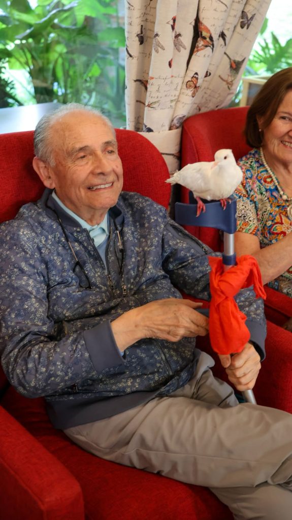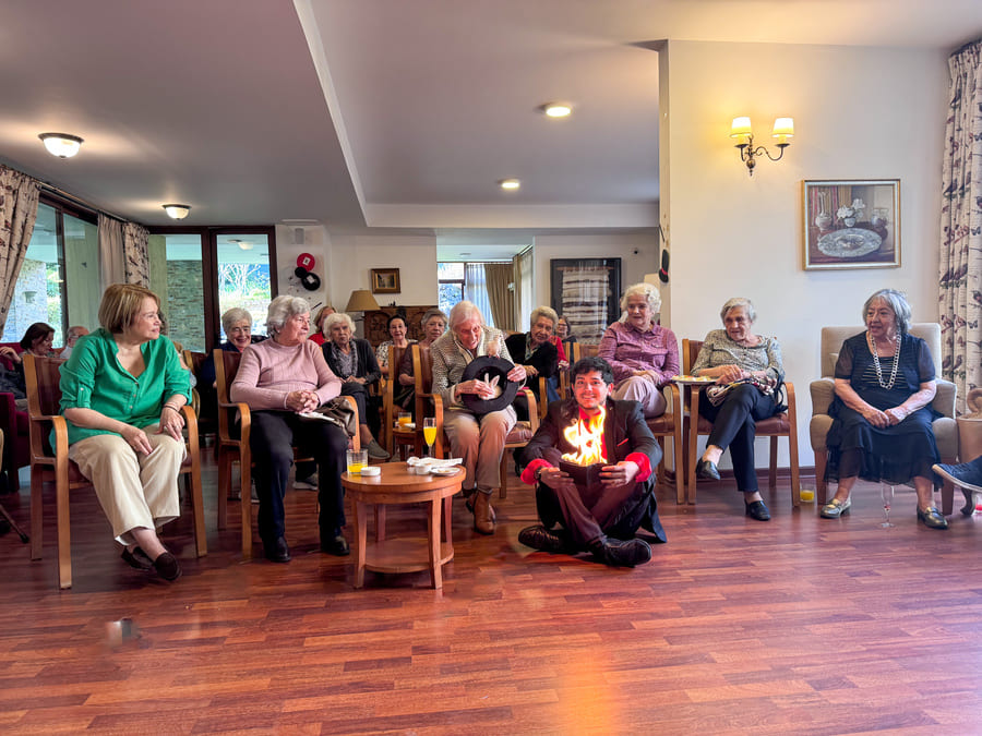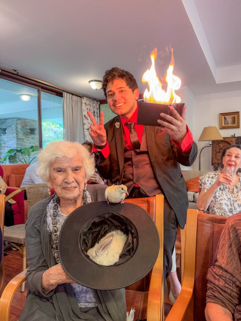 Además, disfrutamos de una tarde distinta, llena de risas, asombro y emoción, junto a un mago que nos sorprendió a todos. Y aunque su show fue increíble, los verdaderos protagonistas fueron sus adorables compañeros: una paloma blanca y un conejito que pasaron de brazo en brazo, recibiendo el cariño de todos.